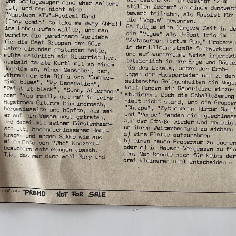 Private first original pressing "PROMO NOT FOR SALE" on back, not numbered, white promo labels, housed in flimsy paper foldout cover of one of the best Austrian psych mod freakbeat albums that I´ve listened in years... Who covers, selfpenned tracks...a little gem... Recommended!!! M- Copy!, very very slight aging as usual ..Pokora..Gigarare, never seen a promo copy for sale