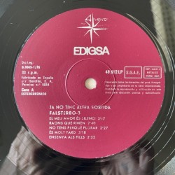Overlooked Catalonian folk rock combo with IA I Batiste, Group de Folk members, and the beautiful female voice of Montse Domenech, sings in Catalan songs from Stills, Nash, Dylan, Paxton , Denver, 3rd and last album….Top archive copy with original hype price sticker
