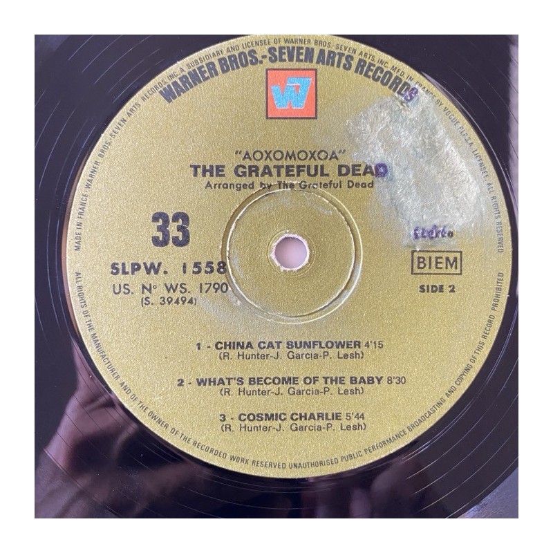 Their most experimental acid freak output…French pressing , full laminated single cover , Rick Griffin art cover, Spine split, a bit cranky at the start of side 1, rest plays very fine, colored sticker tear in one of the labels