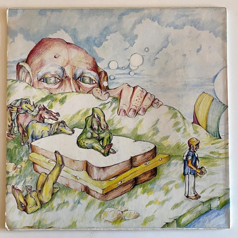 Rare Dutch progressive, soft rock, sung in english and produced by Richard de Bois , housed in unbelievable great gatefold cover art, very good guitar passages and one long Beatles tracks suite on first tracl side B, Cover from VG+ to Ex ( tear ofc white on white hardly noticeable), record vusually EX plays M- Pokora 4001 R2 way rarer nowadays