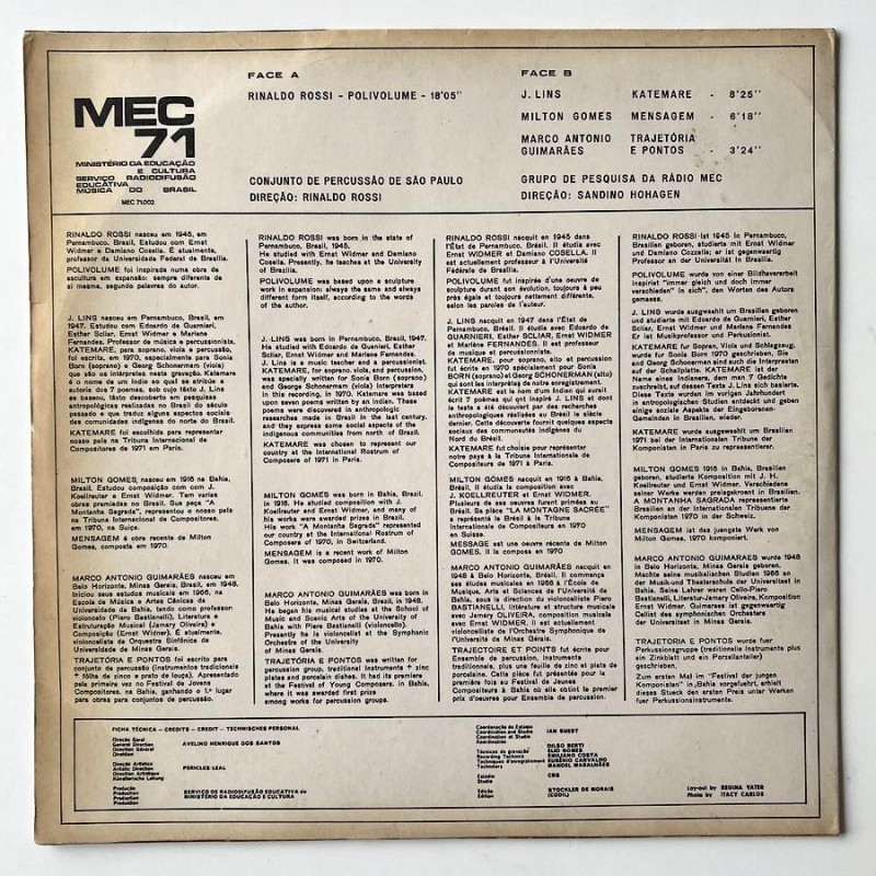 Ministerio Da Educacao e Cultura 71.002 (Brazil LP 1971)