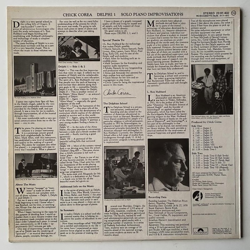 Solo piano jazz improvisations dedicated to the school of Scientologists founded by L. Ron Hubbard..Spanish first press wiith inner in M- shape