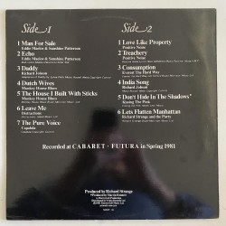 UK obscure wave minimal synth pop live compilation, recorded at cult Cabaret Futura London club, produced by its founder Richard Strange… features Positive Noise, Kissing the Pink , Richar Jobson tracks amongst others unavailable elsewhere..EX/ M- condition