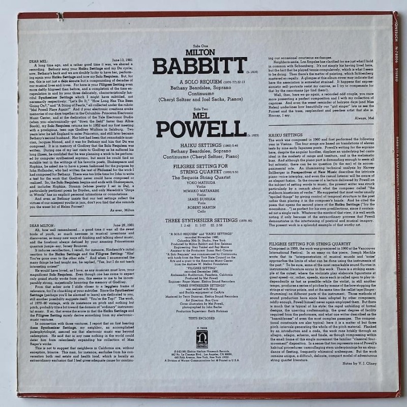 Nonesuch N- 78006 (USA LP 1981)