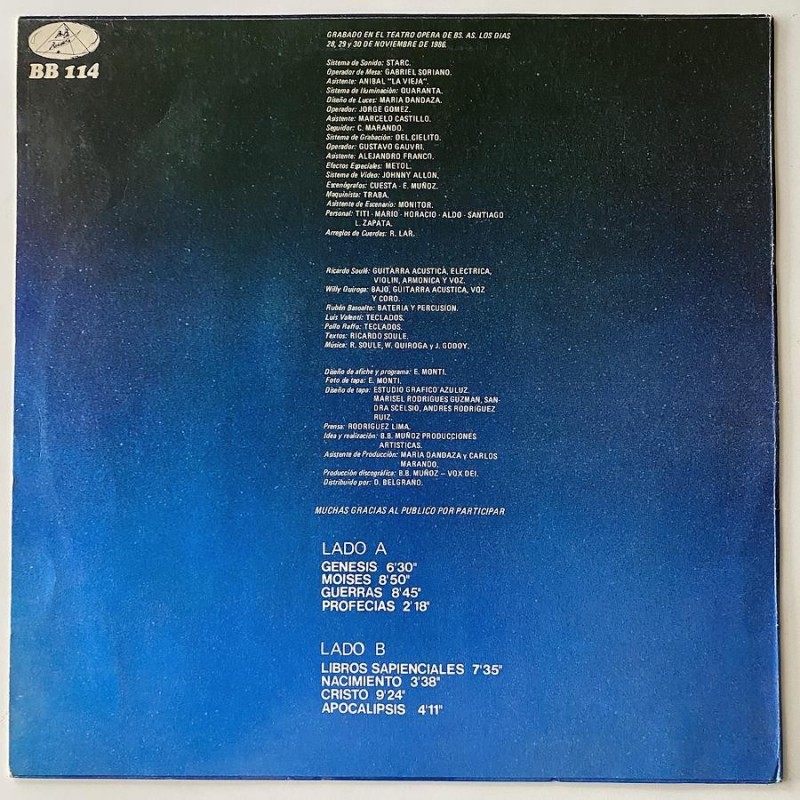 Live recording of the argentinean masterpiece, produced by B.B. Muñoz ( yes, the same that issued two albums in Spain in the 70's). Original first press in M- archive condition…it has the insert