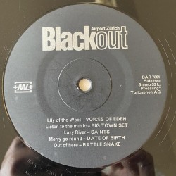 scarce private pressing (promo-only?) of acts who played at Zurich airport club Blackout, though all tracks are studio recordings rather than live cuts. Mainly underground progressive, but some occasional folk and jazz – has an excellent lead femvox version of Cream’s ‘I Feel Free’, Incl. Skorpyons of Jamaica and their killer tropical funk version of the Lyn Collins / James Brown anthem, THINK (ABOUT IT) ...while great band names (Voices Of Eden, Date Of Birth, Rattlesnake, Skorpyons Of Jamaica, Big Town Set) are a bonus. Nice b/w laminated gatefold cover with photos of club and bands playing on stage EX/M- copy, no inserts