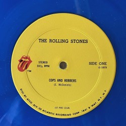4-tracks special radio station advance promotional record for the Documentary " The Rolling Stones Story" ..Flimsy paper cover in EX condition, Blue vinyl in M-