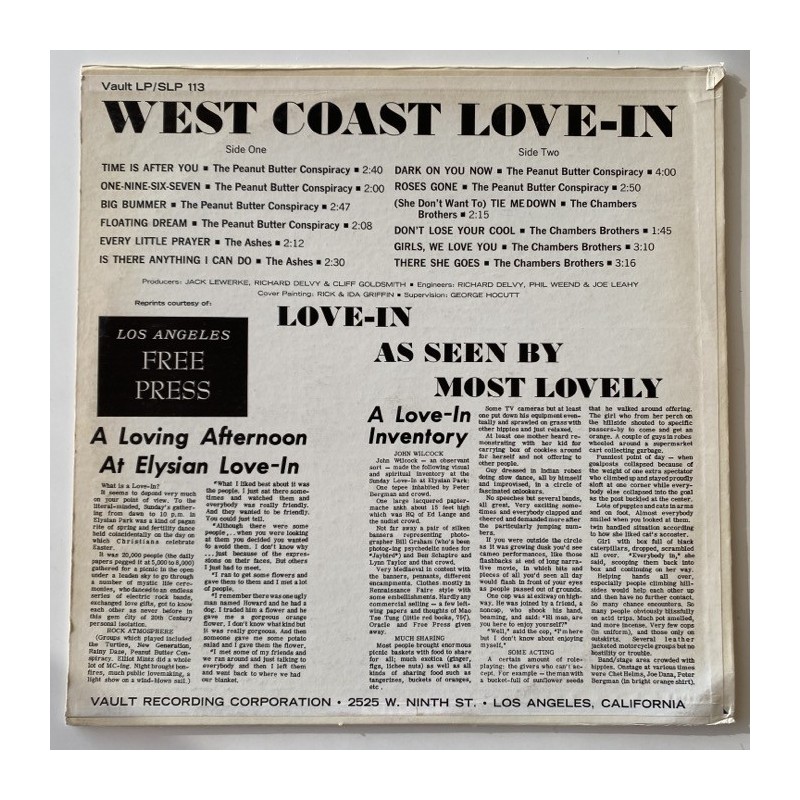 US west coast garage psych compilation with exclusive tracks, featuring The Ashes, Chamber Brothers and Peanut Butter Conspiracy….M- archive copy housed in nice period cover