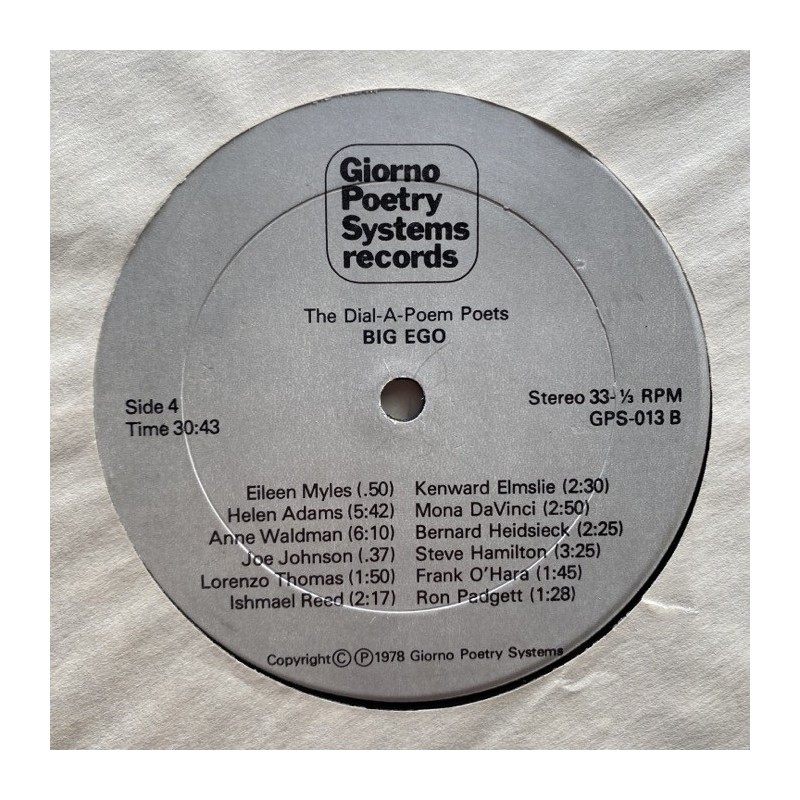 Giorno Poetry Systems GPS 012/13 (USA 2LP 1978)