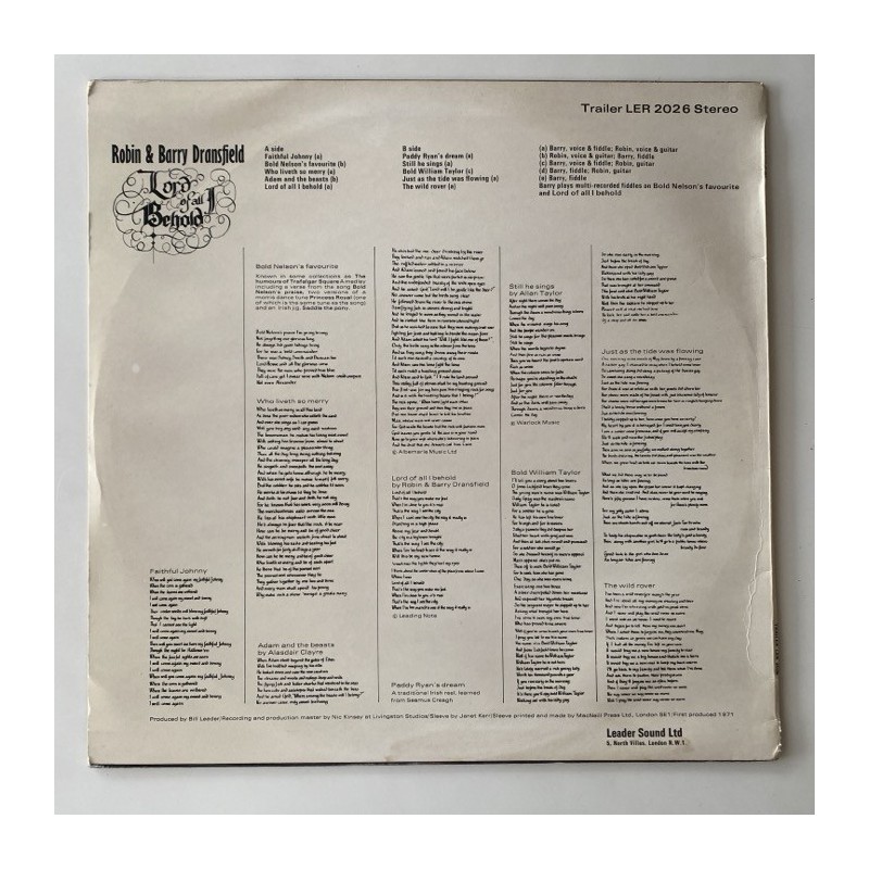 Robin & Barry Dransfield - Lord of all I behold