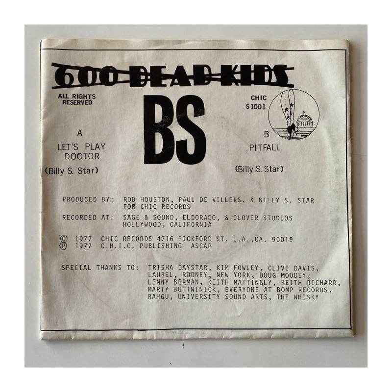 US punk from Billy S. Star, who produced the Holy Grail “Middle Class” 7”..Strong VG+ cover / M- record