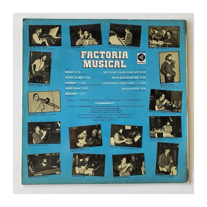 Very unknown post Gotic post Catalonia spanish band . Musically instro jazz fusion groovy funk , two beatles covers, some selfpenned tracks and my fave: the danceable "running" , a cover from Earth Wind & Fire....Recommended ! grab this before it dissapears! DJ archive EX/M- unplayed Copy,