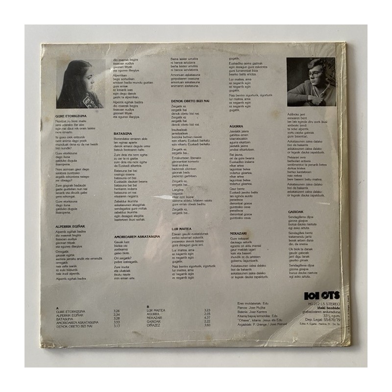 Undiscovered gem of Basque electric folk rock, not unlike the first Haizea album in places, released in the same Herri Gogoa green label, musically with Dylan-esque influences, male female teenage voices , electric backing band, guitar, bass, piano, harmonica and drums... Top Sealed M-/M unplayed Copy! Very very rare Spanish album, featured in last 8001 Record Collector Dreams Book R4 page 58, only a handful copies known in hand of top collectors, even unknown in Spain, Spare sealed copy in years, grab this beauty for your collection!,