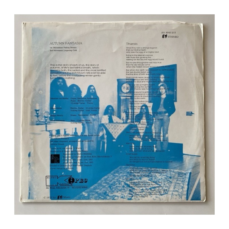 Kraut prog Holy Grail...Original second pressing blue pic ( white labels, rare group picture on carpet on back,). Recorded at the end of 1973, and probably pressed in 1974... Very fragile open up slight laminated cover in EX to M- conditions very clean, no creases or writings,, Vinyl M-... Pokora, really rare now to get at this fantastic condition....