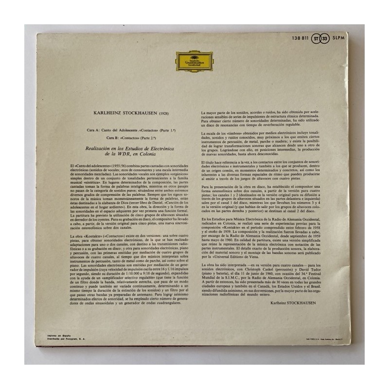 Karlheinz Stockhausen - Canto del Adolescente / Contactos 138 813 SLPM