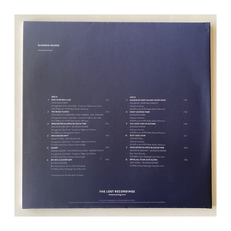 Easy jazz with the crispy voice of Blossom, de Luxe silkscreened embossed gatefold 180 gr. With original label inner. TOP archive unplayed copy