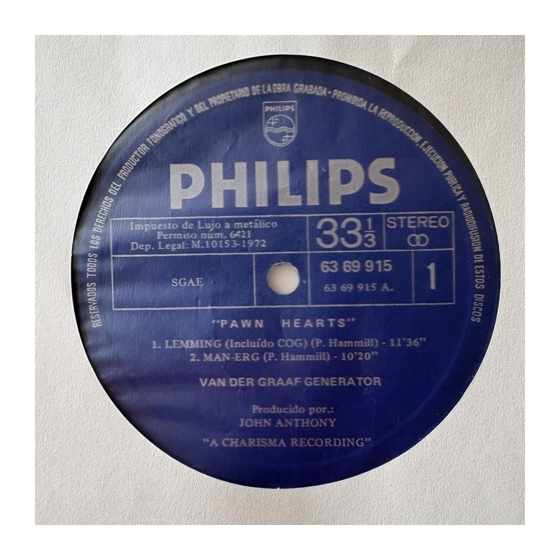 Spanish megarare unique cover as seen on Magalhaes book, an alternate full laminated single cover made for promo purposes ….., Half Price Decent Copy VG+ cover , record VG+ superficial hairlines and scuffs…clean labels.. one of the rarest VDGG ítems worldwide, Pokora 4 stars !++++…..