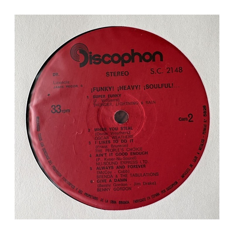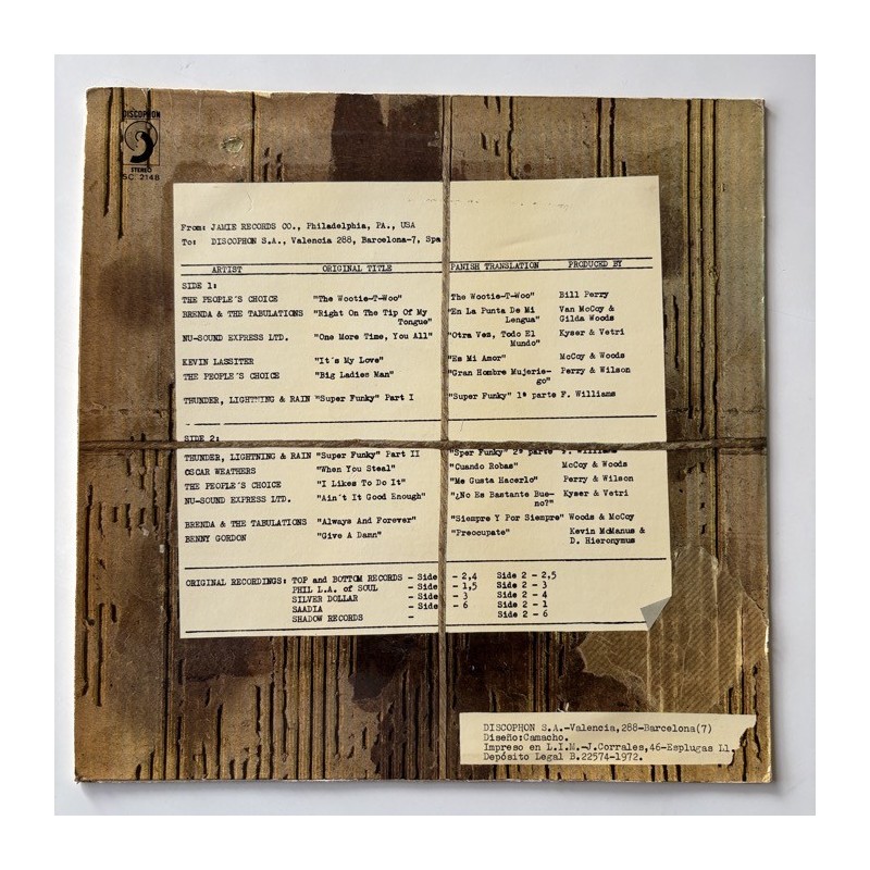 Original Spanish unique pressing in red Discophon label. Perhaps one of the rarest euro soul funk USA compilations, made under license of Jamie Records... see the great track listing in pictures. Reissued some years ago by Wah Wah records... originals are impossible to find, this is the second one I've seen for sale in my collectors life... so, don't sleep!,..beautiful EX/M- condition